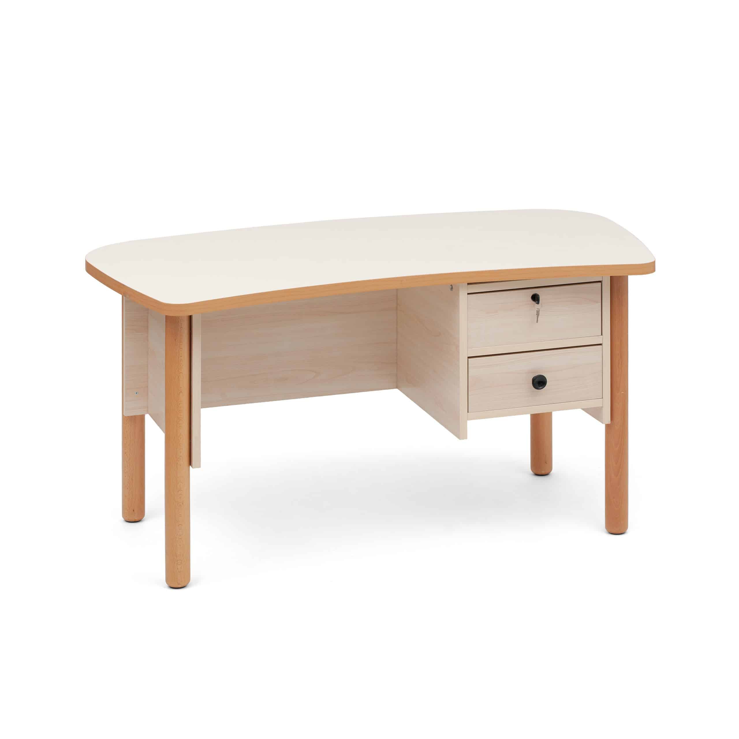 Cattedra Insegnante Onda Con 2 Cassetti Gambe In Massello Di Faggio Diam.60