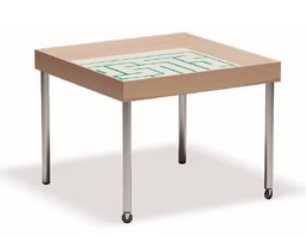 Con 4 gambe di cui n.2 con ruote piano con sponde laterali progettato per attività di robotica e coding.