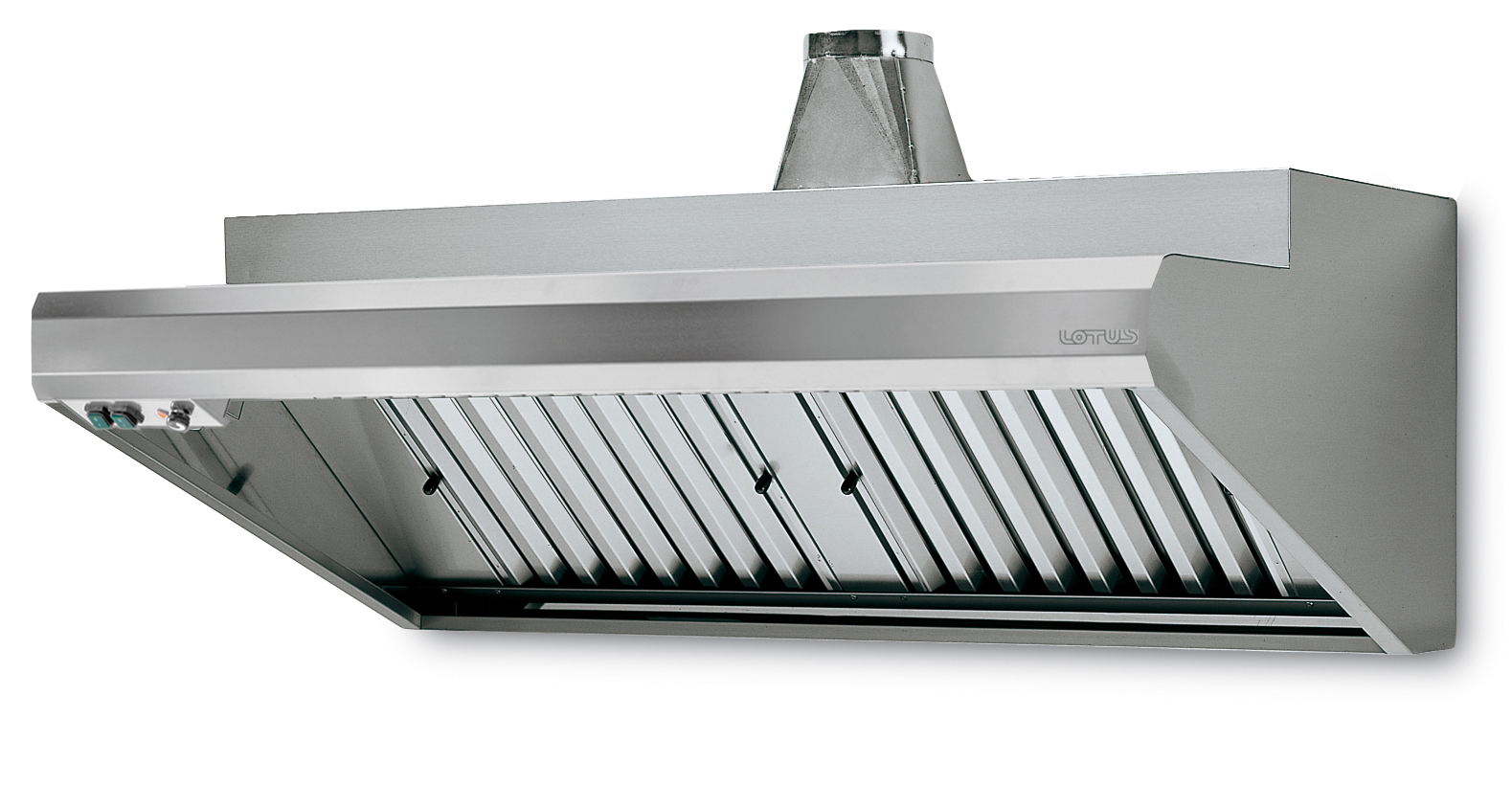 CAPPA A PARETE completa di motore aspirante, regolatore di velocità e lampada. Portata 1500 mc/h