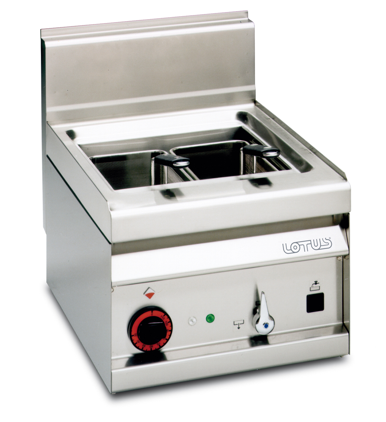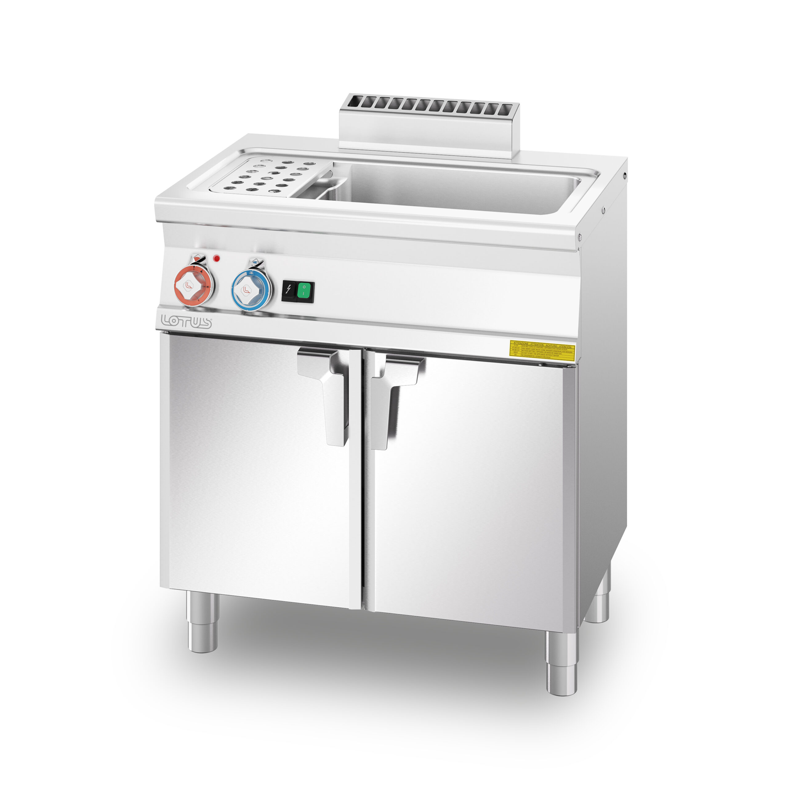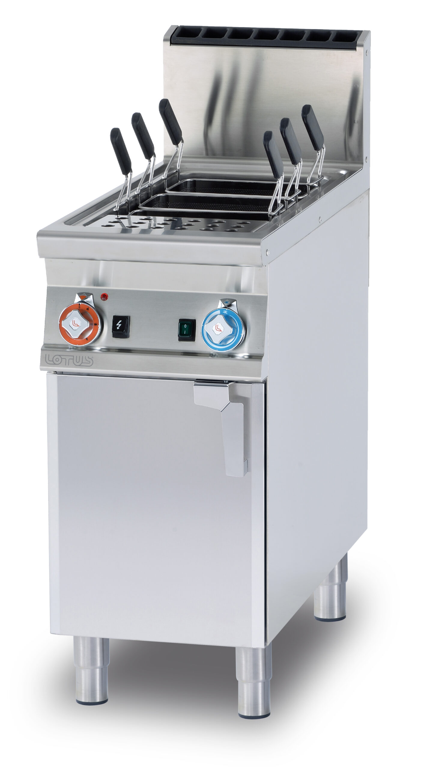CUOCIPASTA TRIFASE LT. 25 Vasca cm. 30,5×33,5×32,7h. Carico acqua automatico con sensore di livello – sfioratore + scarico a pavimento (CESTI ESCLUSI)
