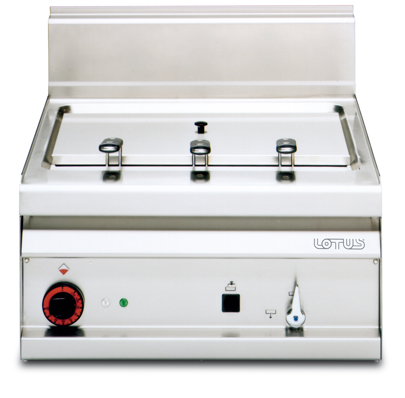 CUOCIPASTA GAS. Vasca 40 litri cm. 51×30,7×32,7h. Carico acqua automatico con sensore di livello – sfioratore + scarico a pavimento (CESTI ESCLUSI) (inclusa 1 testata chiusura piano mod.TPA-55)