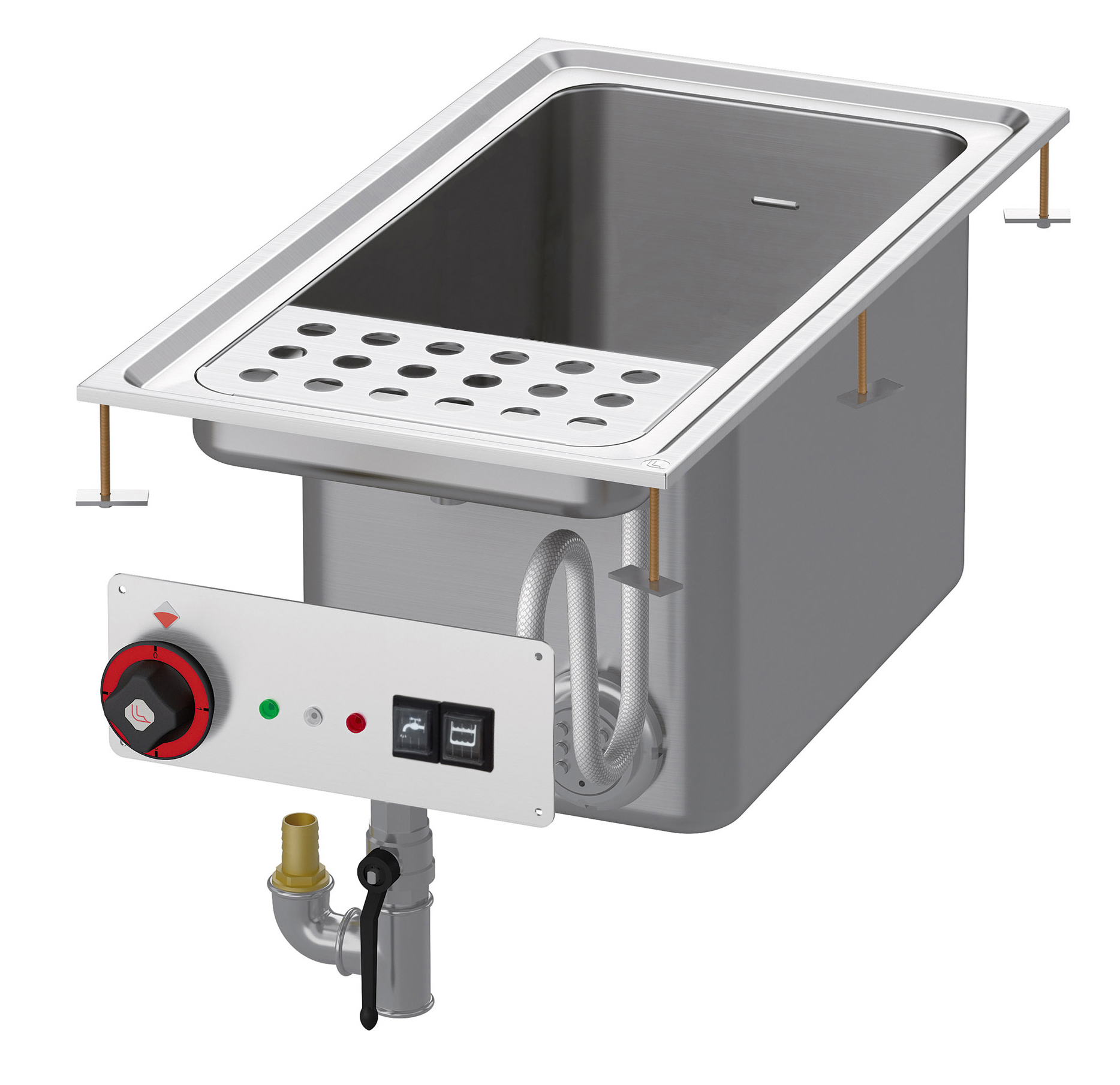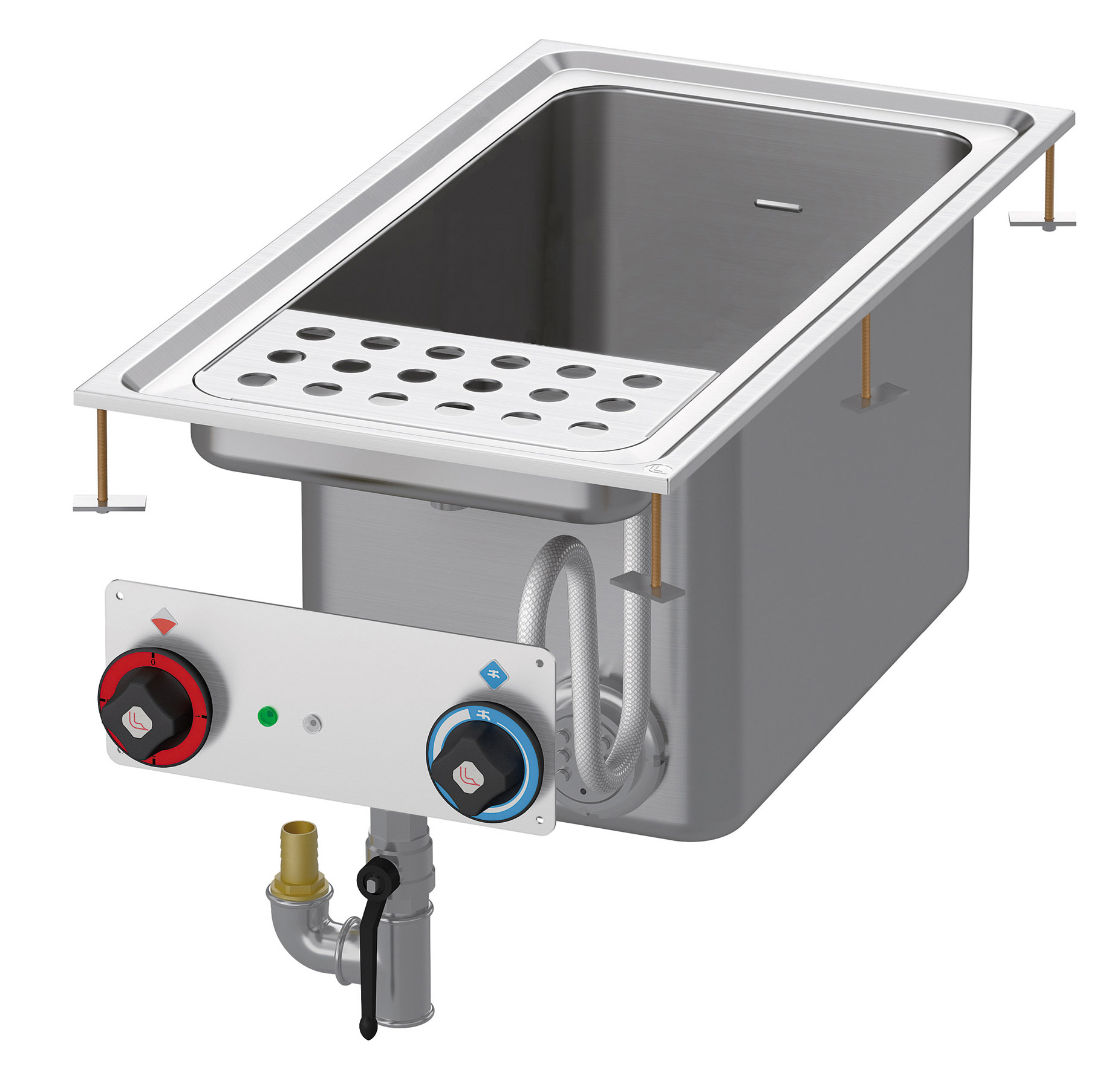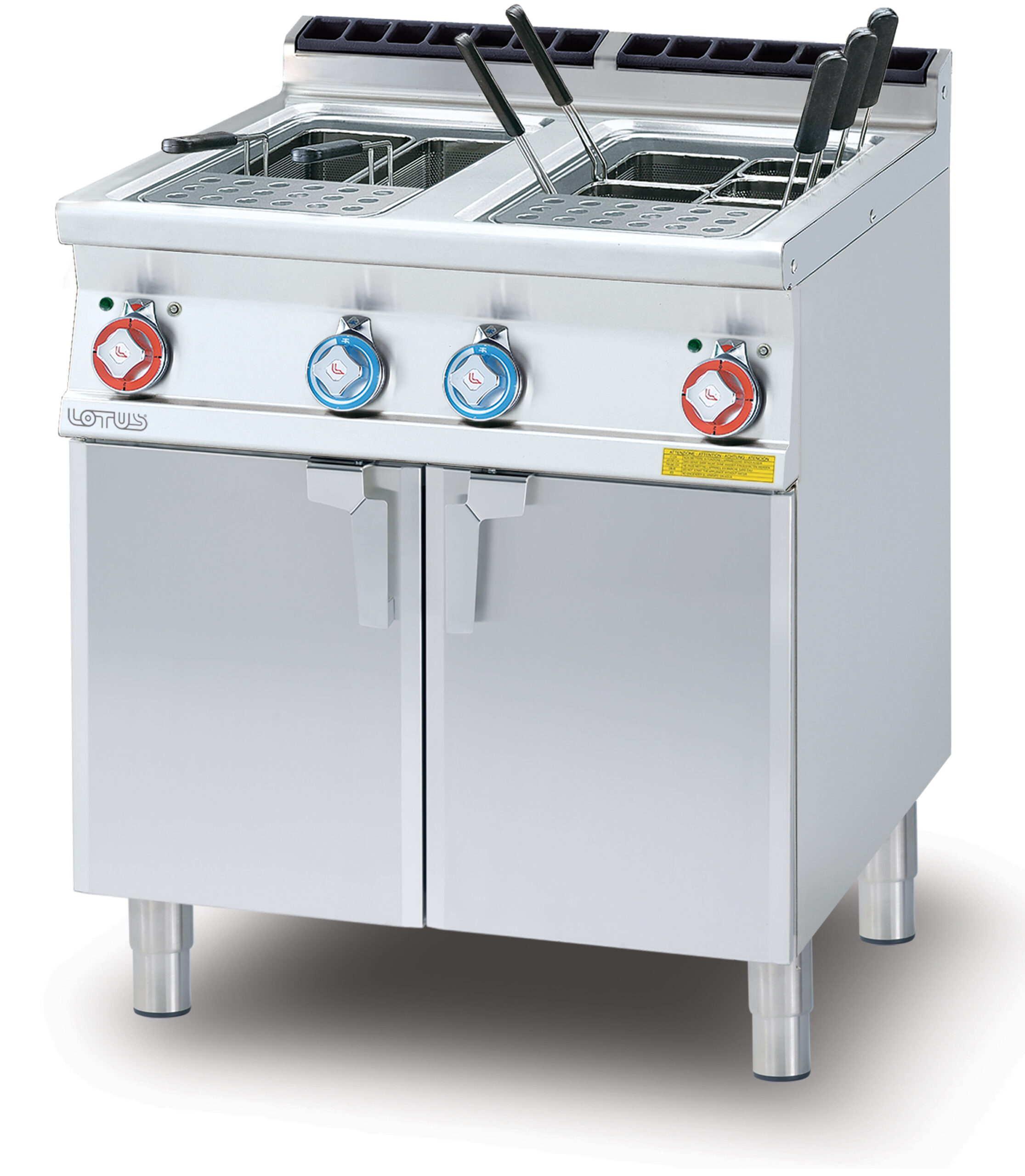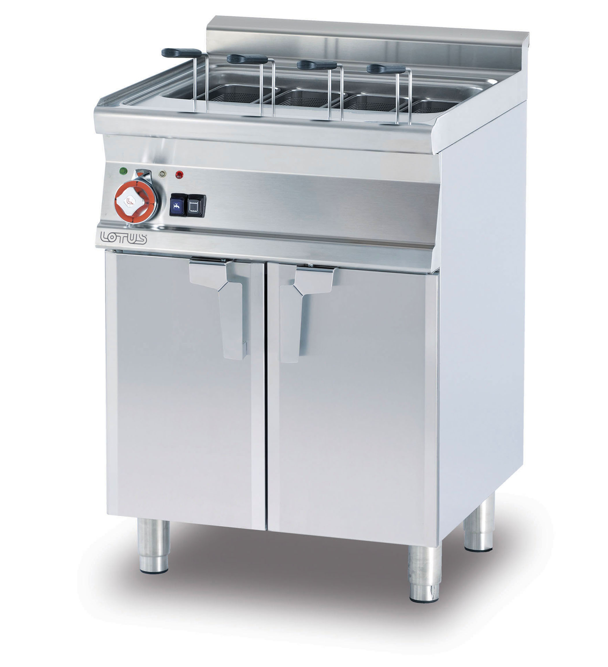 CUOCIPASTA TRIFASE LT. 40 Vasca cm. 30,7×50,9×32,7h. Carico acqua automatico con sensore di livello – sfioratore + scarico a pavimento (CESTI ESCLUSI) (inclusa 1 testata chiusura piano mod.TPA-9)