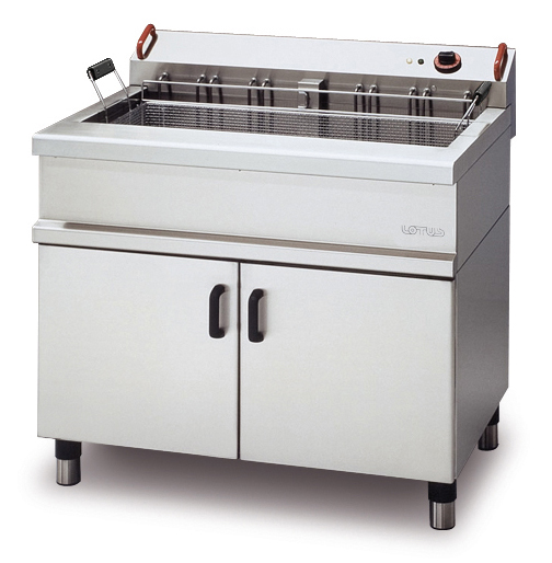 FRIGGITRICE PASTICCERIA TRIFASE – 31 litri Vasca cm. 90×42,5×17,5h – 1 cesto cm. 87x35x8h Filtro e coperchio vasca – Bacinella raccogliolio con filtro
