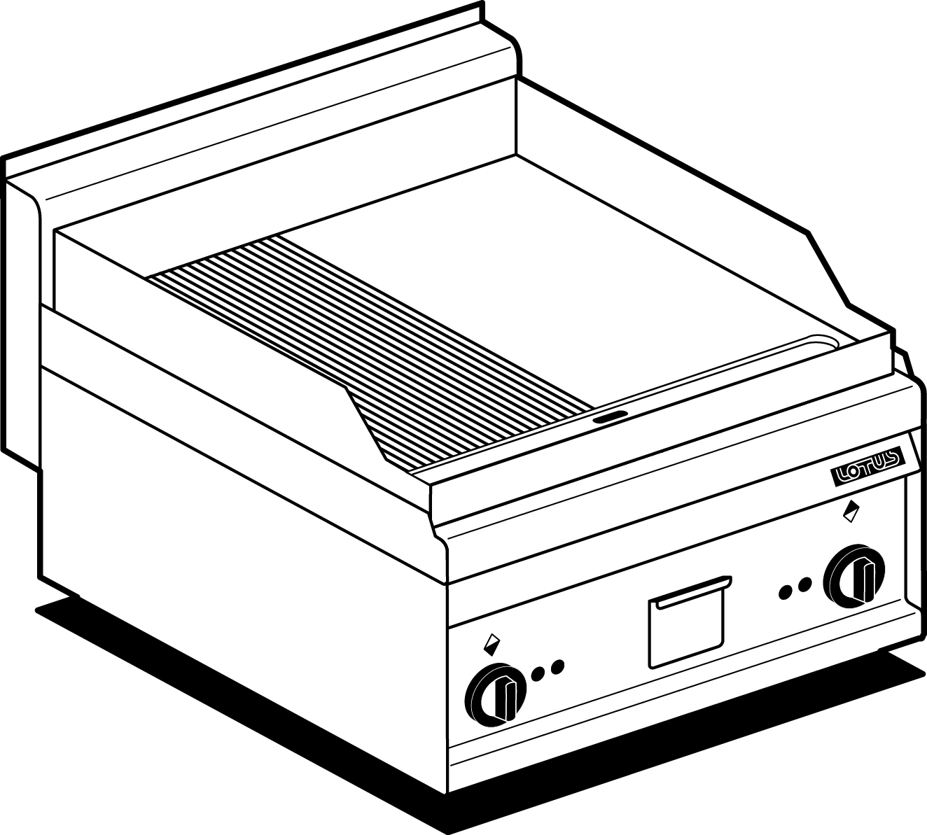 Fry-top elettrico 1/2 liscio + 1/2 rigato, piastra cm.57×41