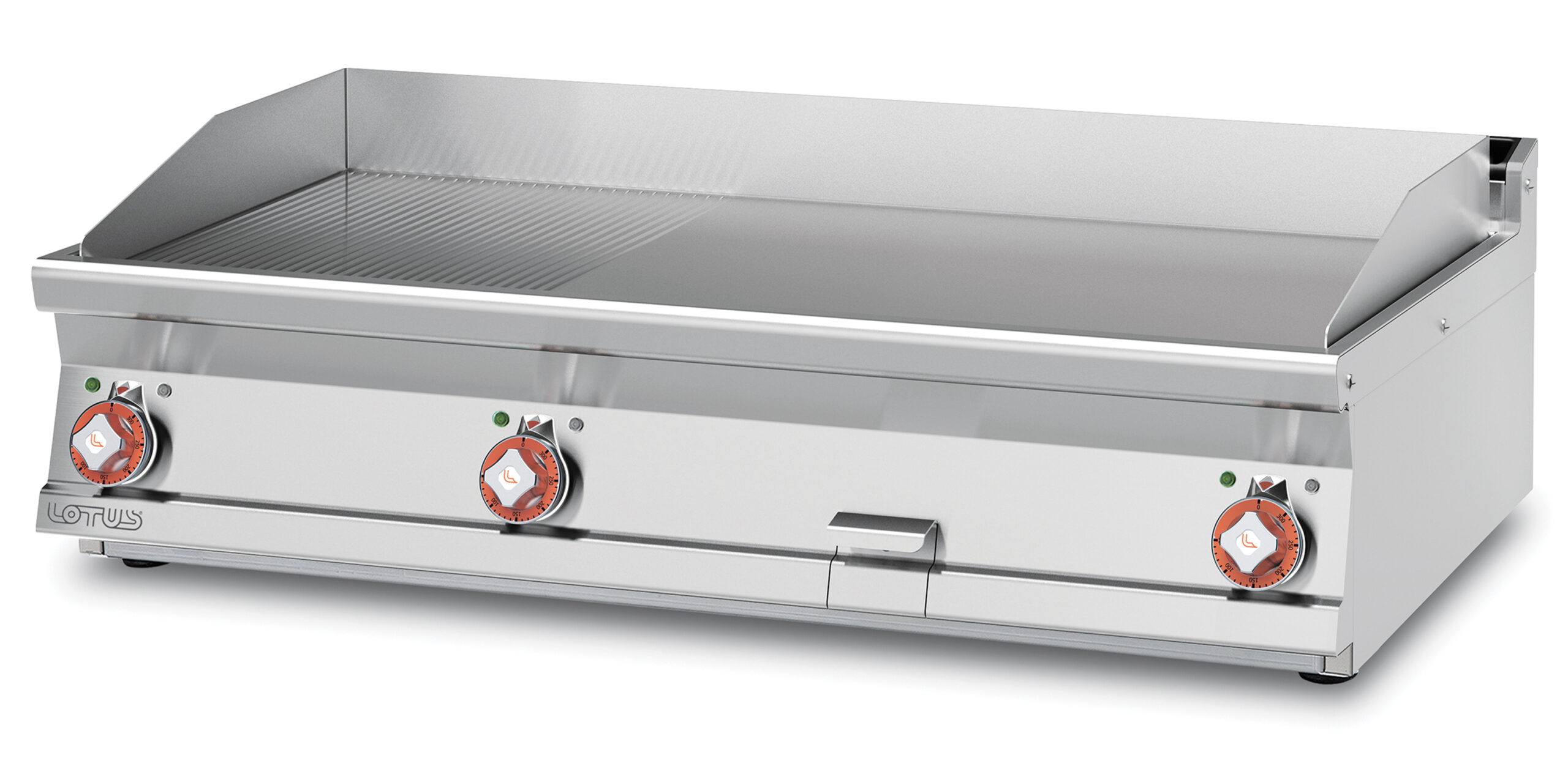 Fry-top elettrico 1/3 rigato + 2/3 liscio, piastra cm.116×51 – 3 zone di cottura (inclusa 1 testata chiusura piano mod.TPA-7)