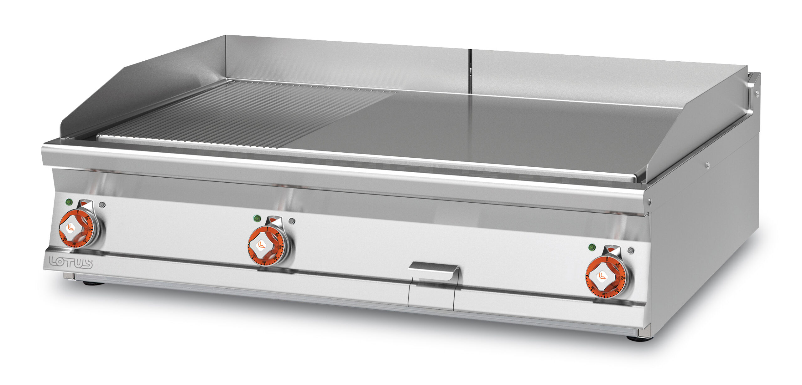 Fry-top elettrico 2/5 rigato + 3/5 liscio, piastra cm.99,5×45 – 2 zone di cottura