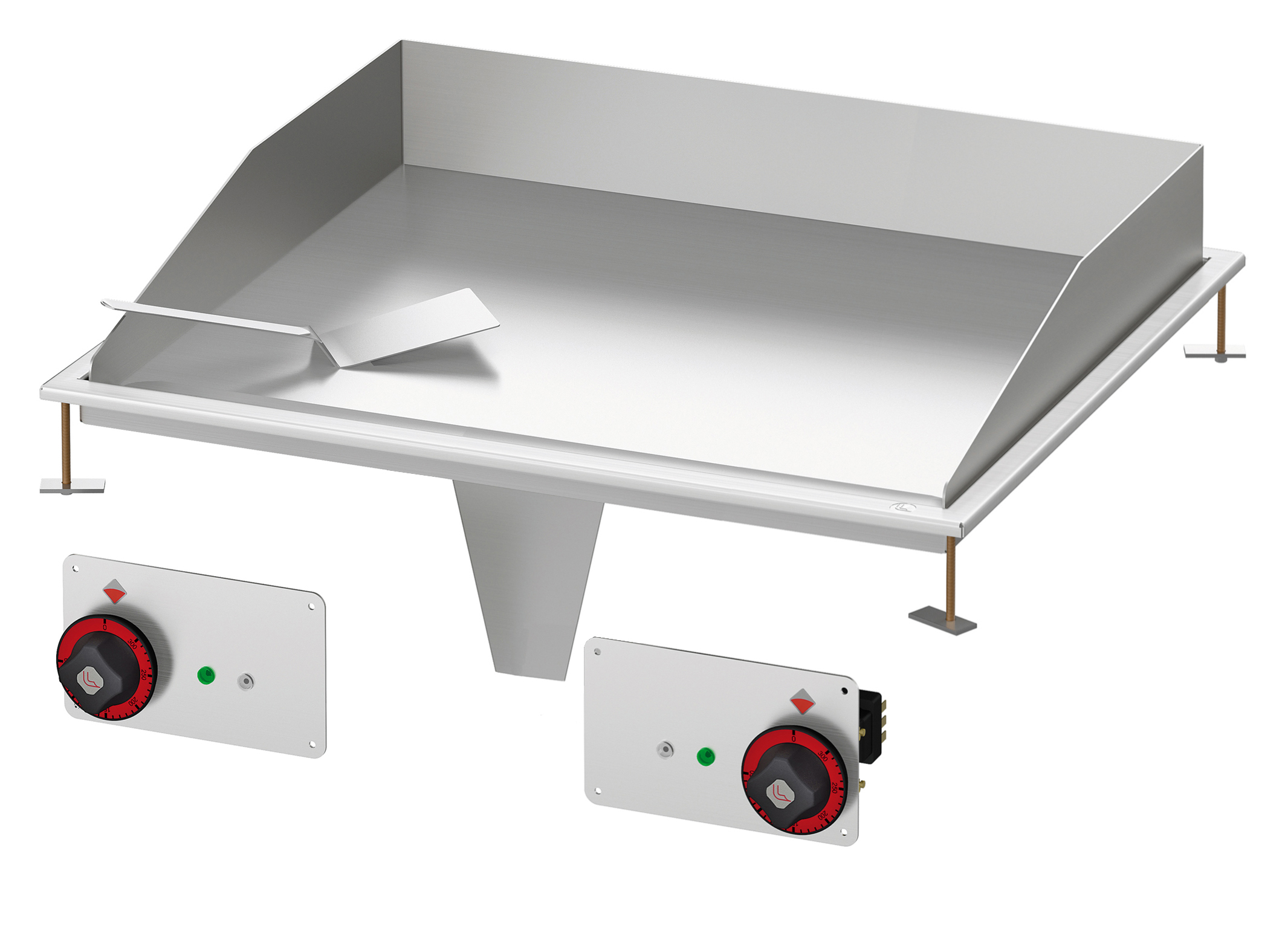 Fry-top elettrico liscio cromato SUPERCHROME (Moca Approved), piastra cm.76×51 – 2 zone di cottura (inclusa 1 testata chiusura piano mod.TPA-7)