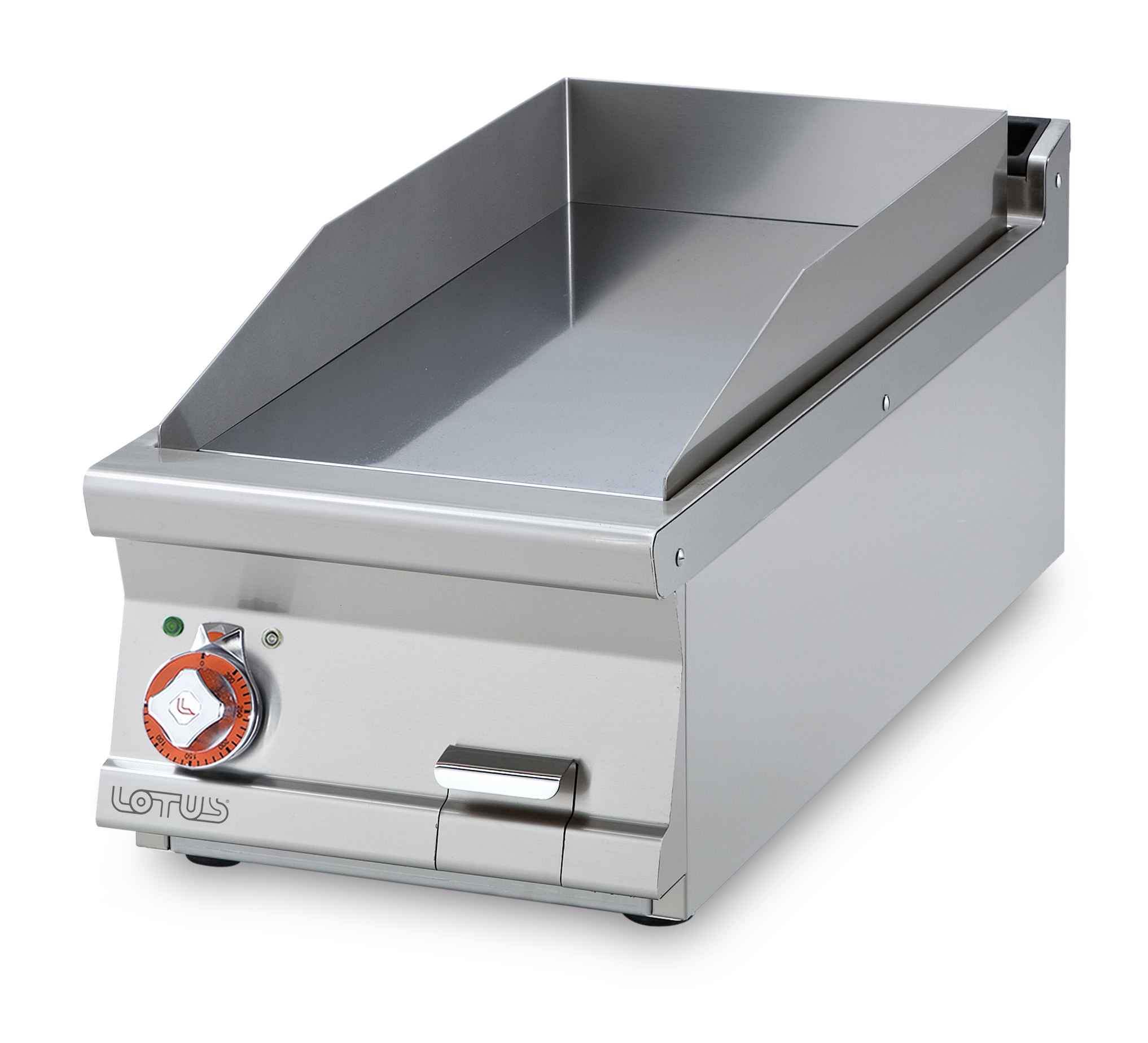 Fry-top elettrico liscio CROMO LUCIDO, piastra cm.36×51 (inclusa 1 testata chiusura piano mod.TPA-7)