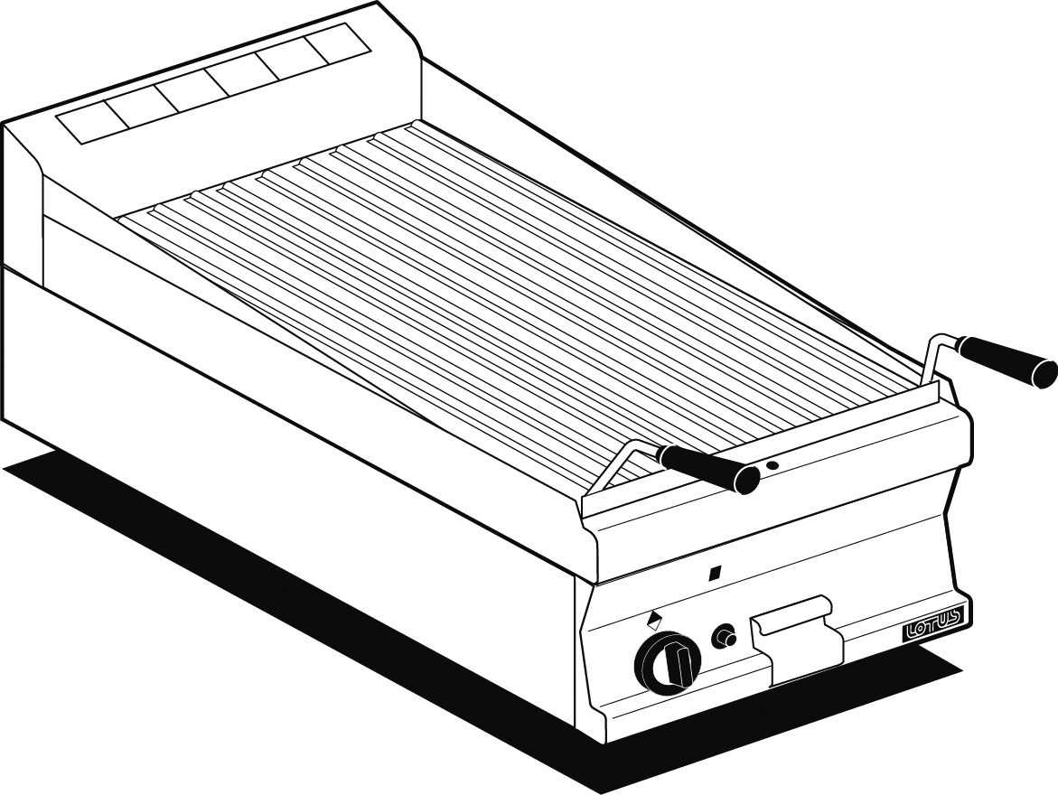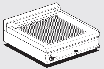 GRIGLIA CONTACT – cottura diretta su resistenza in acciaio inox cm. 55×43 ribaltabile – 2 zone cottura (inclusa 1 testata chiusura piano mod.TPA-7)
