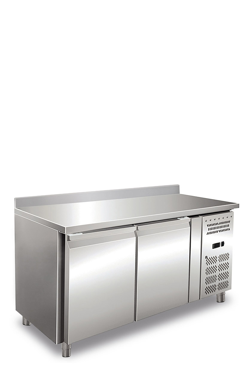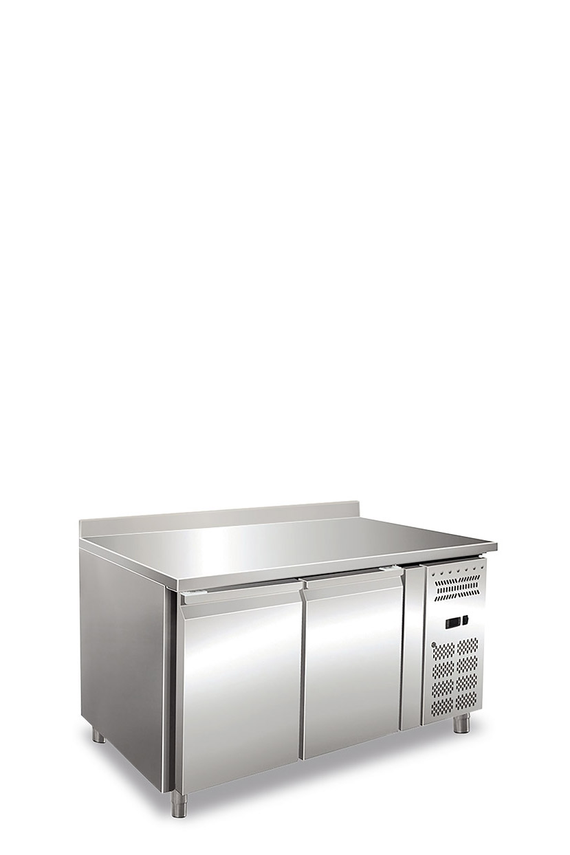 Tavolo refrigerato due ante ventilato con alzatina. Bassa temperatura