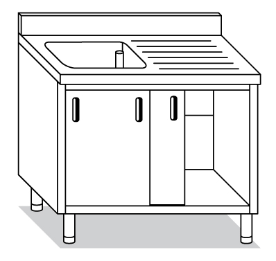 LAVELLO ARMADIATO con porte scorrevoli, vasca cm.60x50x30h, gocciolatoio destro e alzatina