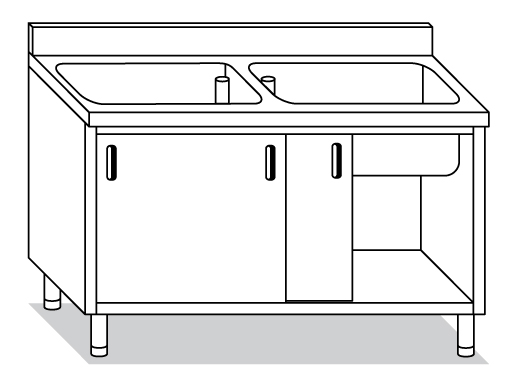 LAVELLO ARMADIATO con porte scorrevoli, 2 vasche cm.40x50x25h, gocciolatoio destro e alzatina