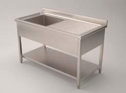LAVELLO con vasca cm.60x50x30h e gocciolatoio destro, alzatina e ripiano di fondo
