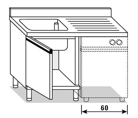 Lavello per incasso lavastoviglie con porte battenti con gocciolatoio destro, vasca cm.60x50x30h.
