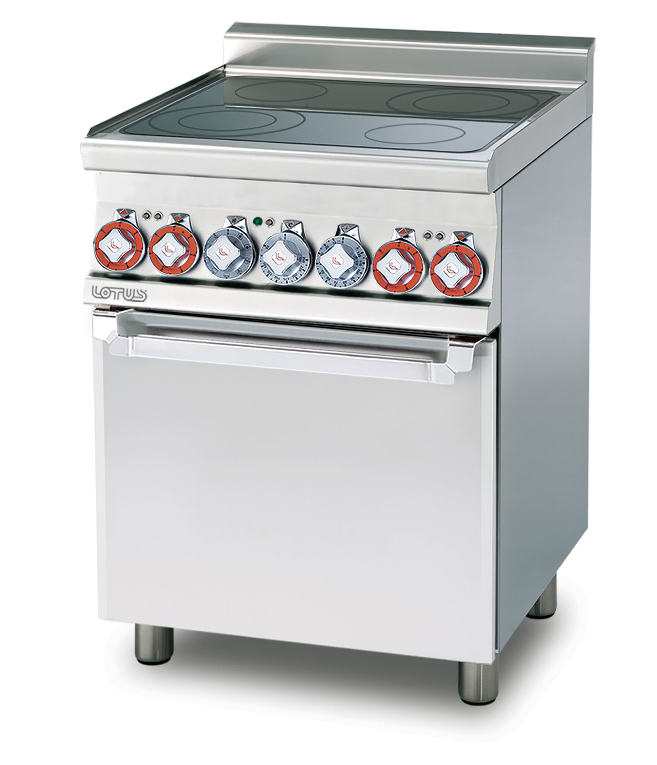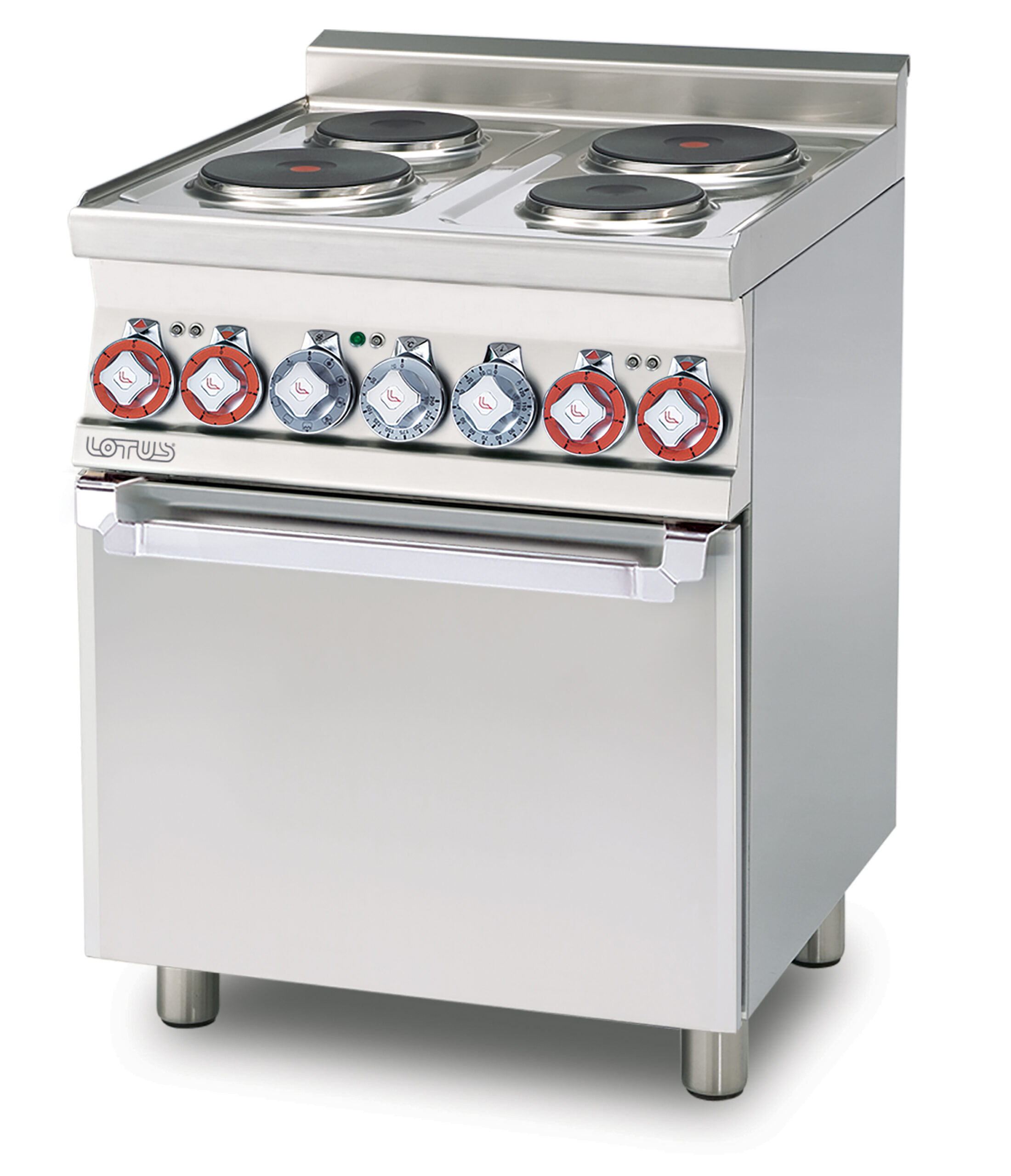 CUCINA MISTA 4 FUOCHI CON Forno elettrico multifunzione – Camera cm. 46x37x35h, temp: 50÷250°C, con 1 griglia cm.41×32,5 – Porta vetro