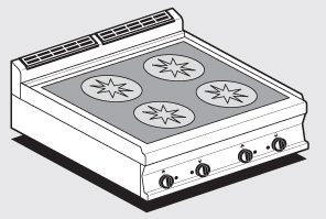 PIANO COTTURA TRIFASE – N. 4 piastre quadre (inclusa 1 testata chiusura piano mod.TPA-7)