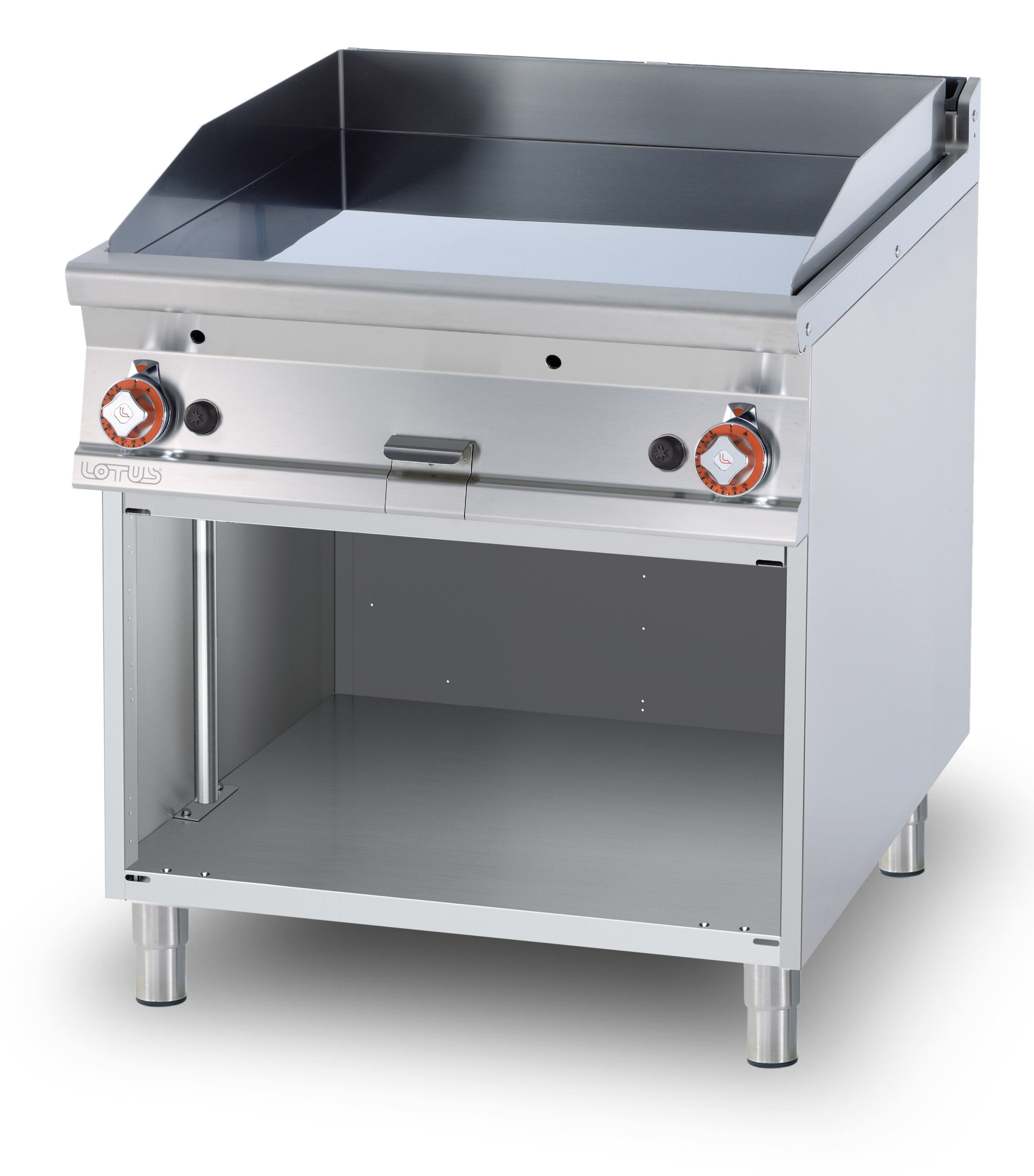 Fry-top gas liscio, su mobile a giorno, piastra cm.76×68 – 2 zone di cottura (inclusa 1 testata chiusura piano mod.TPA-9)