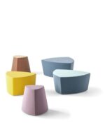 I pouf della linea Kensho fanno parte della collezione Poltrone e divani di Kastel. Il pouf di forma triangolare arrotondata Kensho, design Franco Driusso, è disponibile in 3 dimensioni, con piedini o con ruote, con rivestimento monocolore o bicolore.