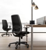 Elegante ed ergonomica, la nuova sedia operativa KEY GO si distingue per i profili sinuosi che le conferiscono un aspetto leggero e dinamico, messo in risalto dal particolare rivestimento effetto rete 3D in colore nero self-supporting ed ignifugo. Dotata di meccanismo syncron e supporto lombare regolabile, Key Go rispetta gli standard della normativa europea EN1335-1:2020 tipo B e D.L. 81.