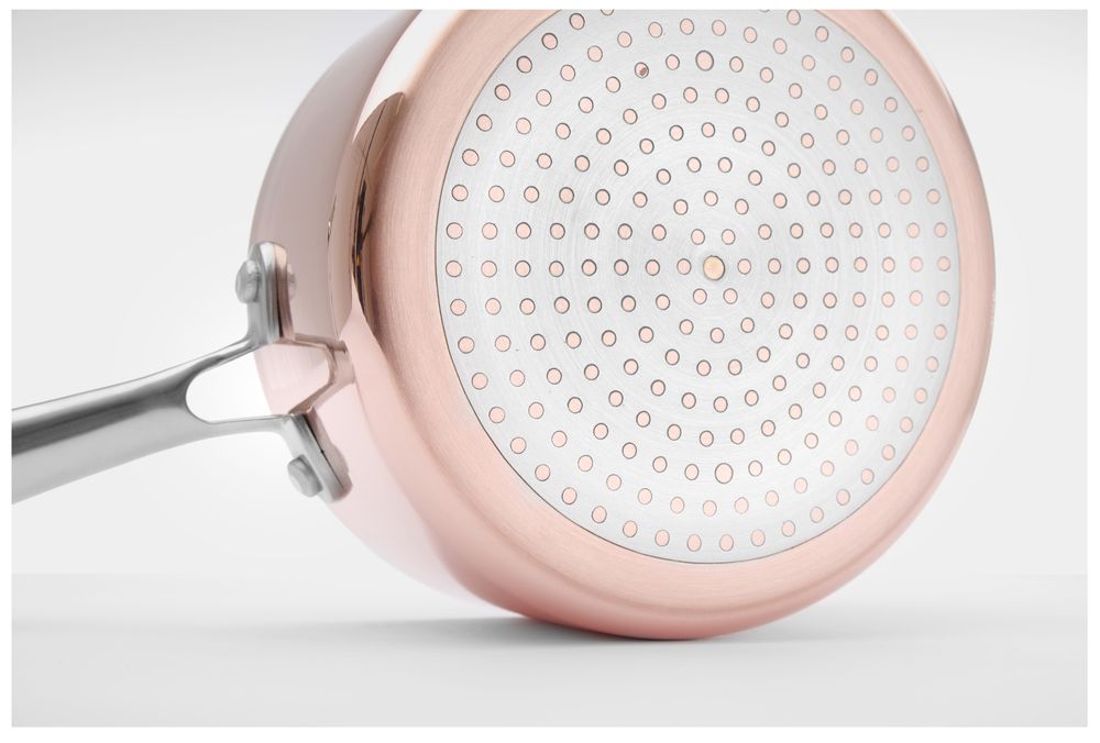 Costruzione a 3 strati, spessore 2,5 mm, costituita da acciaio inossidabile (0,4 mm), alluminio (1,5 mm) e rame (0,4 mm).