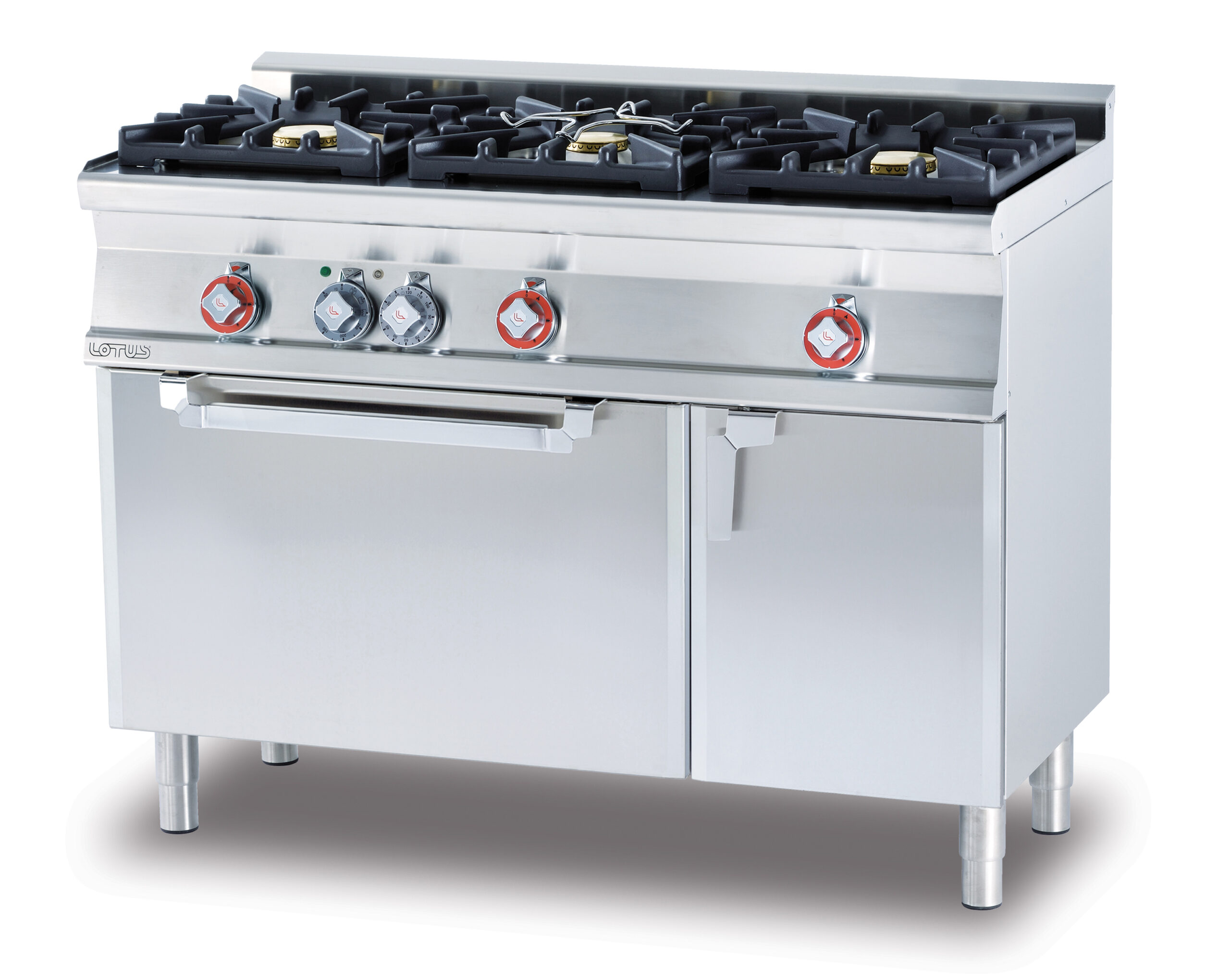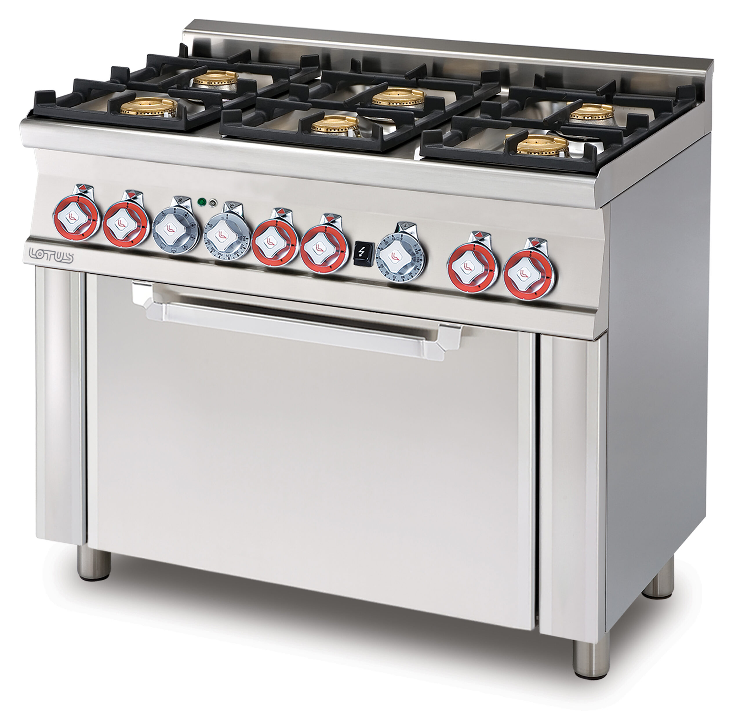 CUCINA MISTA 6 FUOCHI CON Forno elettrico multifunzione – Camera cm. 64x37x35h, temp: 50÷250°C, con 1 griglia cm.53×32,5 GN1/1 – Porta vetro