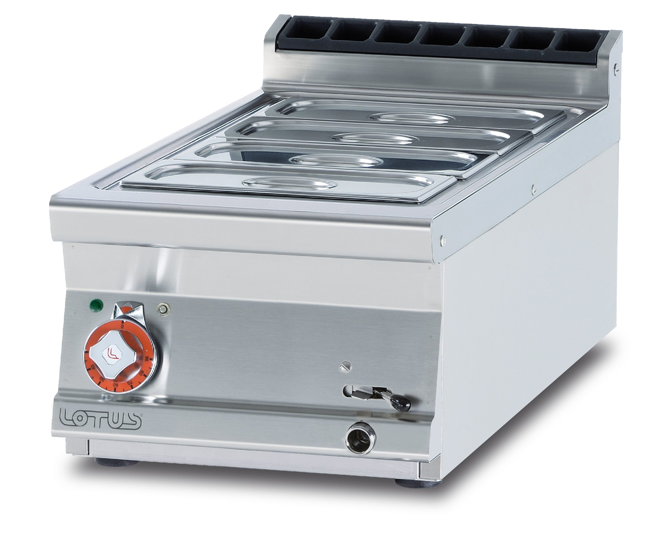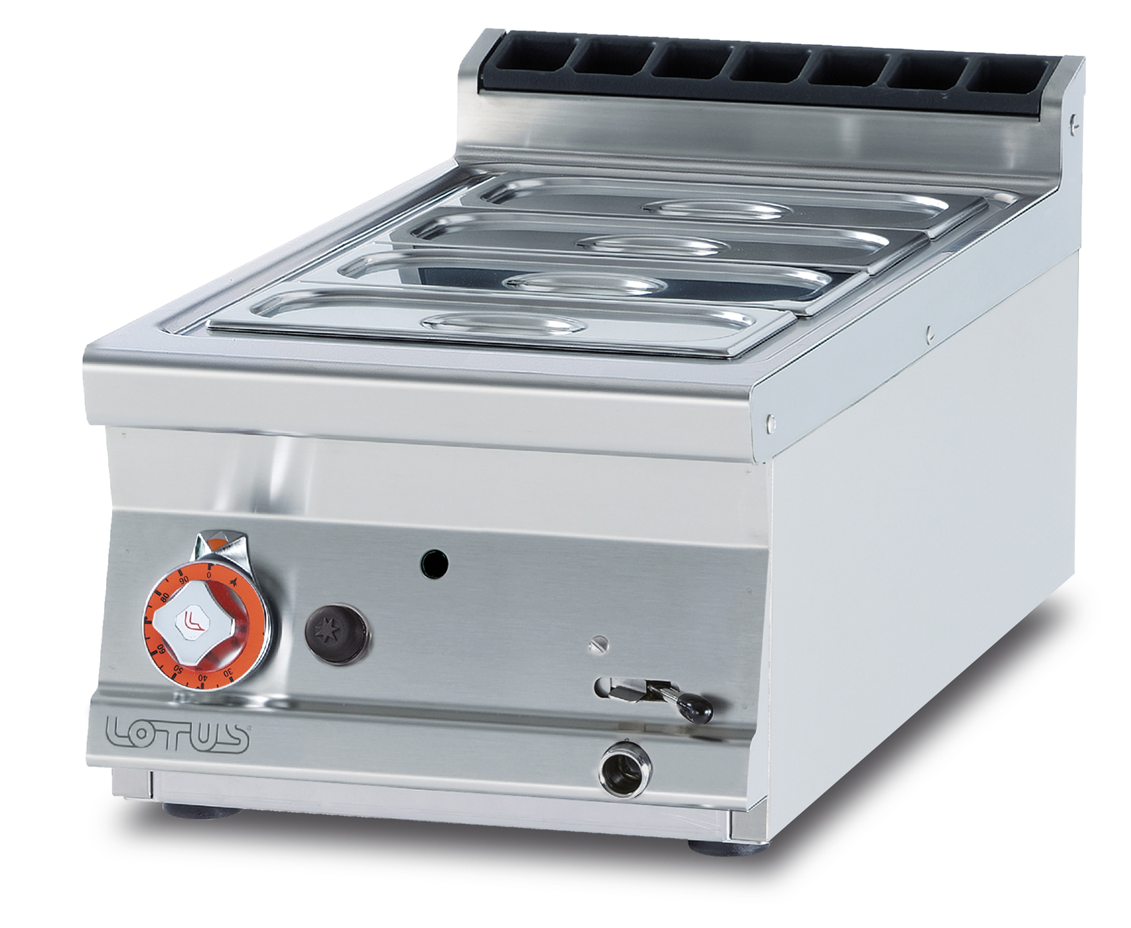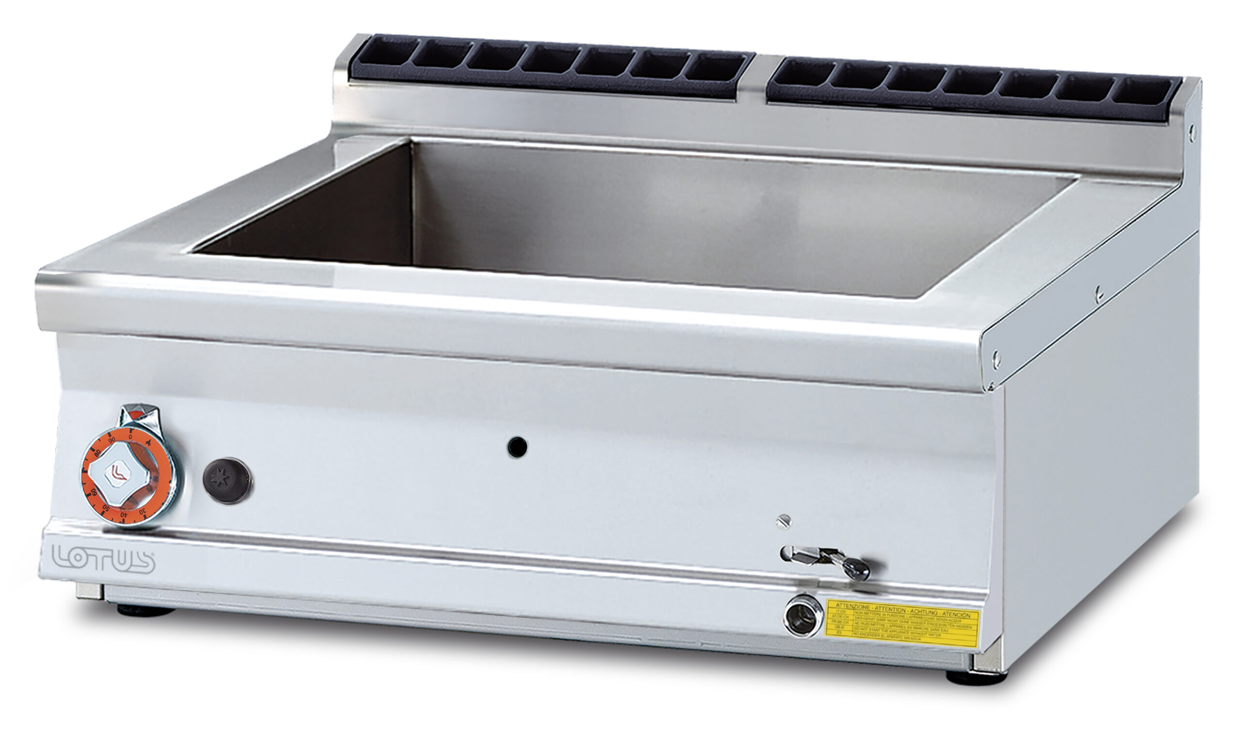 BAGNOMARIA GAS SU MOBILE A GIORNO Vasca per GN 2/1 + 2 x GN 1/3 h.15 Rubinetto carico acqua, scarico a pavimento (inclusa 1 testata chiusura piano mod.TPA-9)