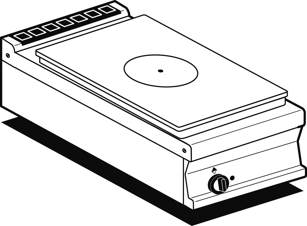 Tutta piastra su Forno elettrico statico cm. 67x73x34h, temp: 50÷300°C, con 1 griglia cm.65×71 GN2/1 – piastra cm. 70×68 4 zone (inclusa 1 testata chiusura piano mod.TPA-9)