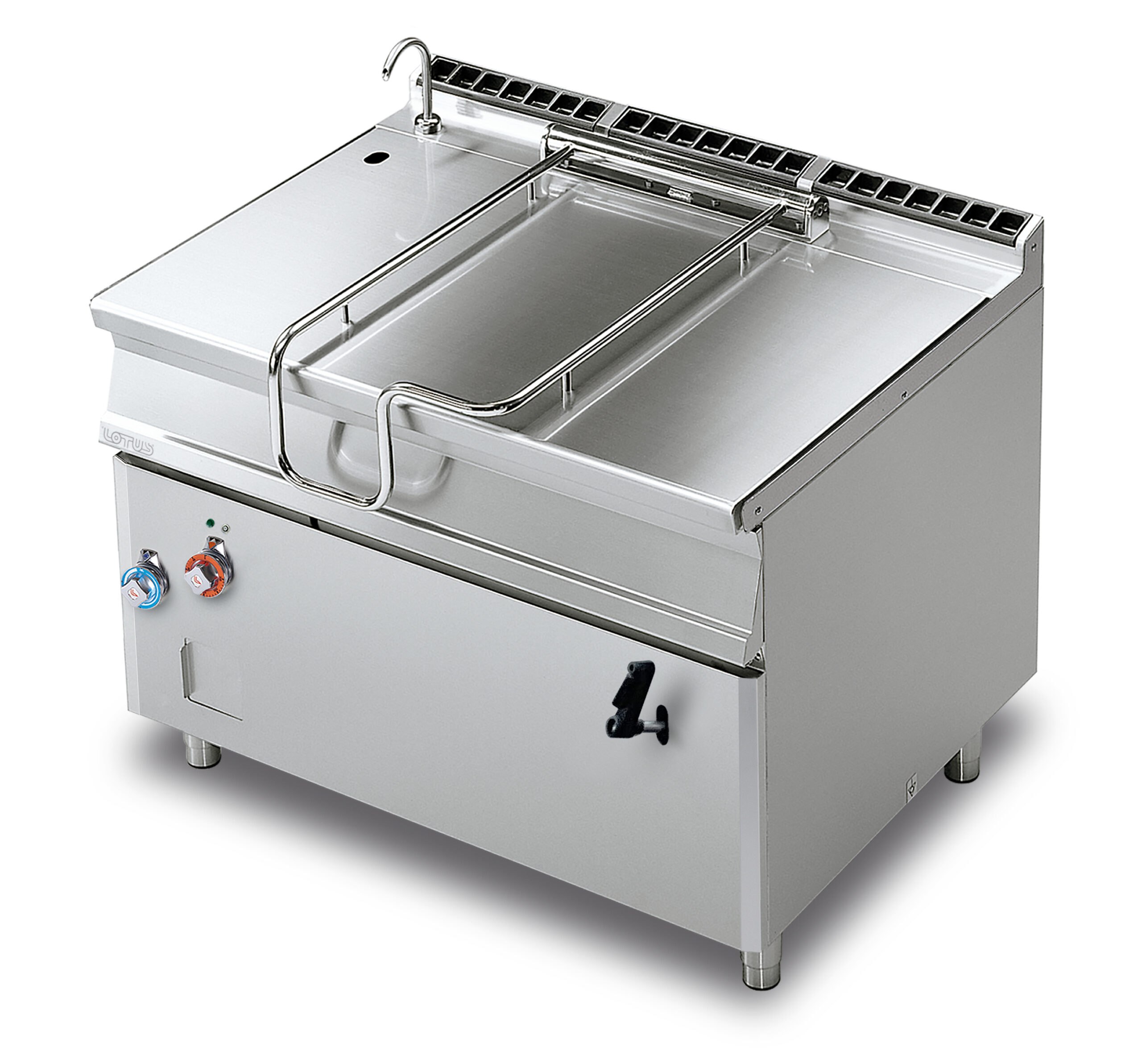 BRASIERA a ribaltamento manuale, Vasca 120 litri cm.110x56x22,5h, fondo inox con coperchio