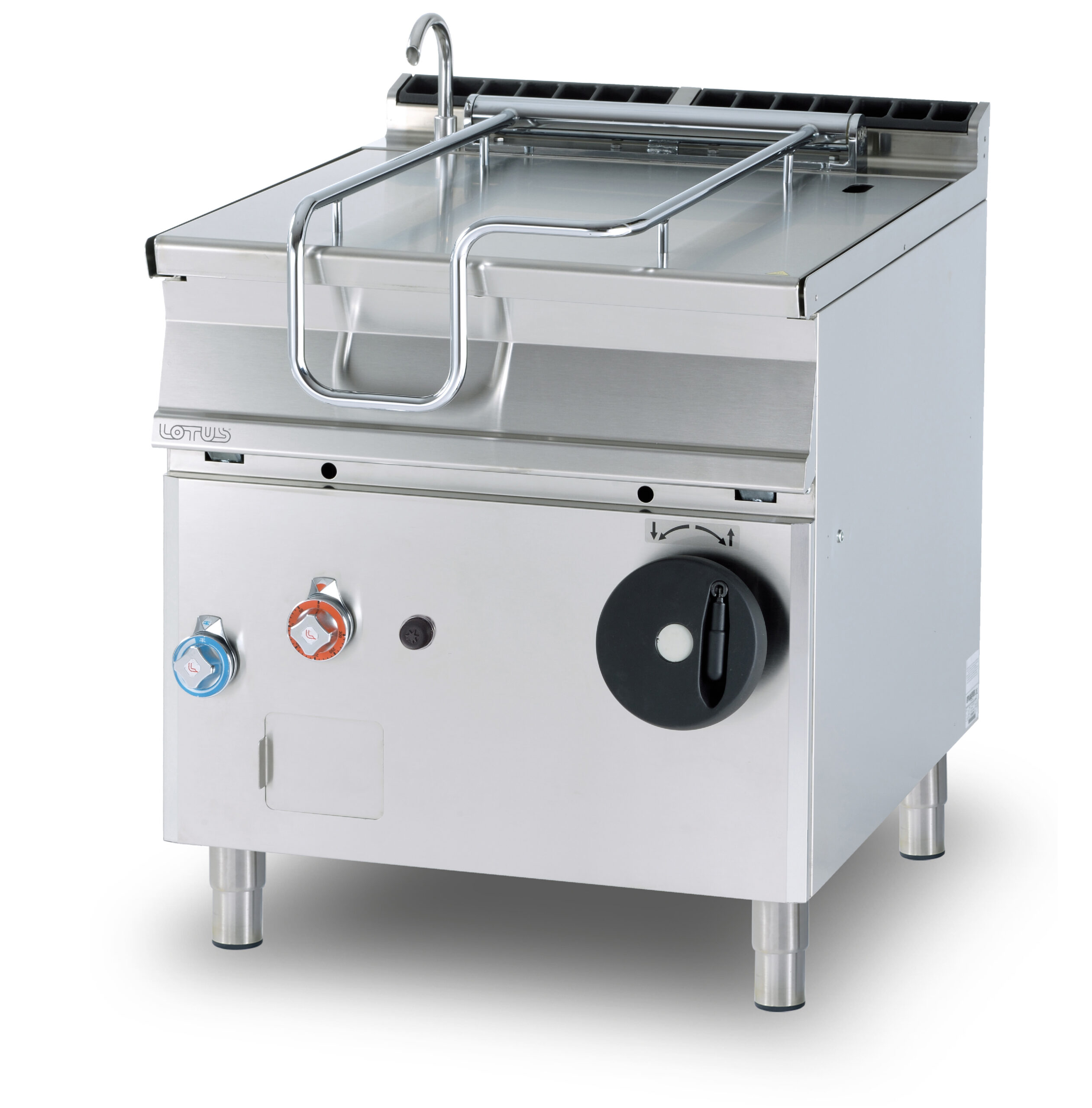 BRASIERA a ribaltamento manuale, Vasca 80 litri cm.72x56x22,5h, fondo inox con coperchio