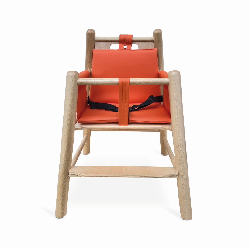 Sedile e schienale in multistrato di faggio dotato di cintura di sicurezza.Imbottitura smontabile