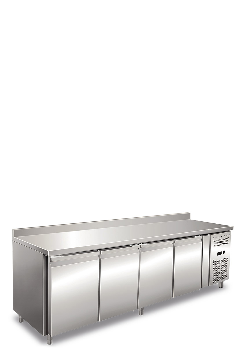 Tavolo refrigerato quattro ante ventilato con alzatina. Temperatura normale