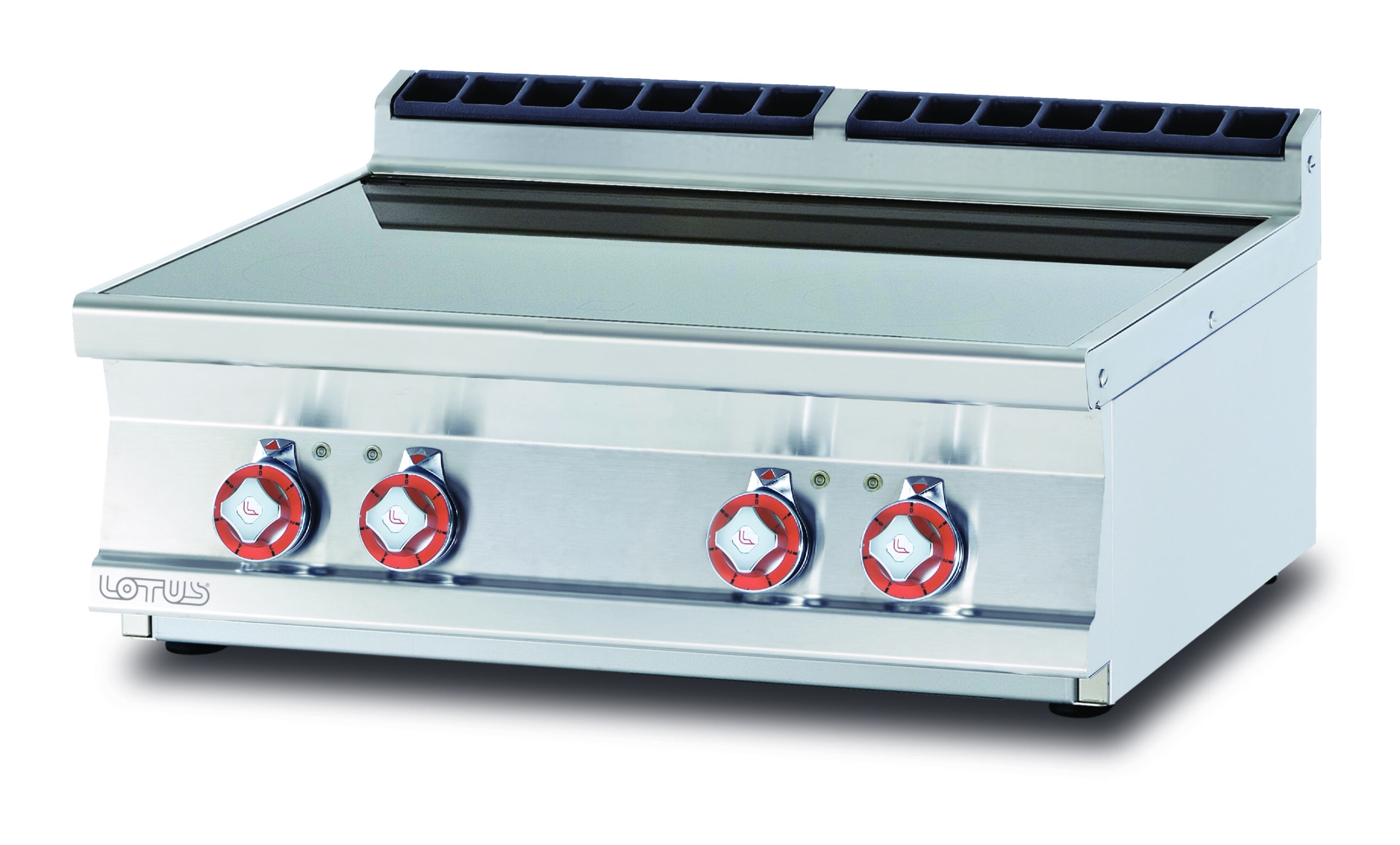 PIANO COTTURA VETROCERAMICA TRIFASE – N. 4 zone – vetro cm.75×77 (inclusa 1 testata chiusura piano mod.TPA-9)