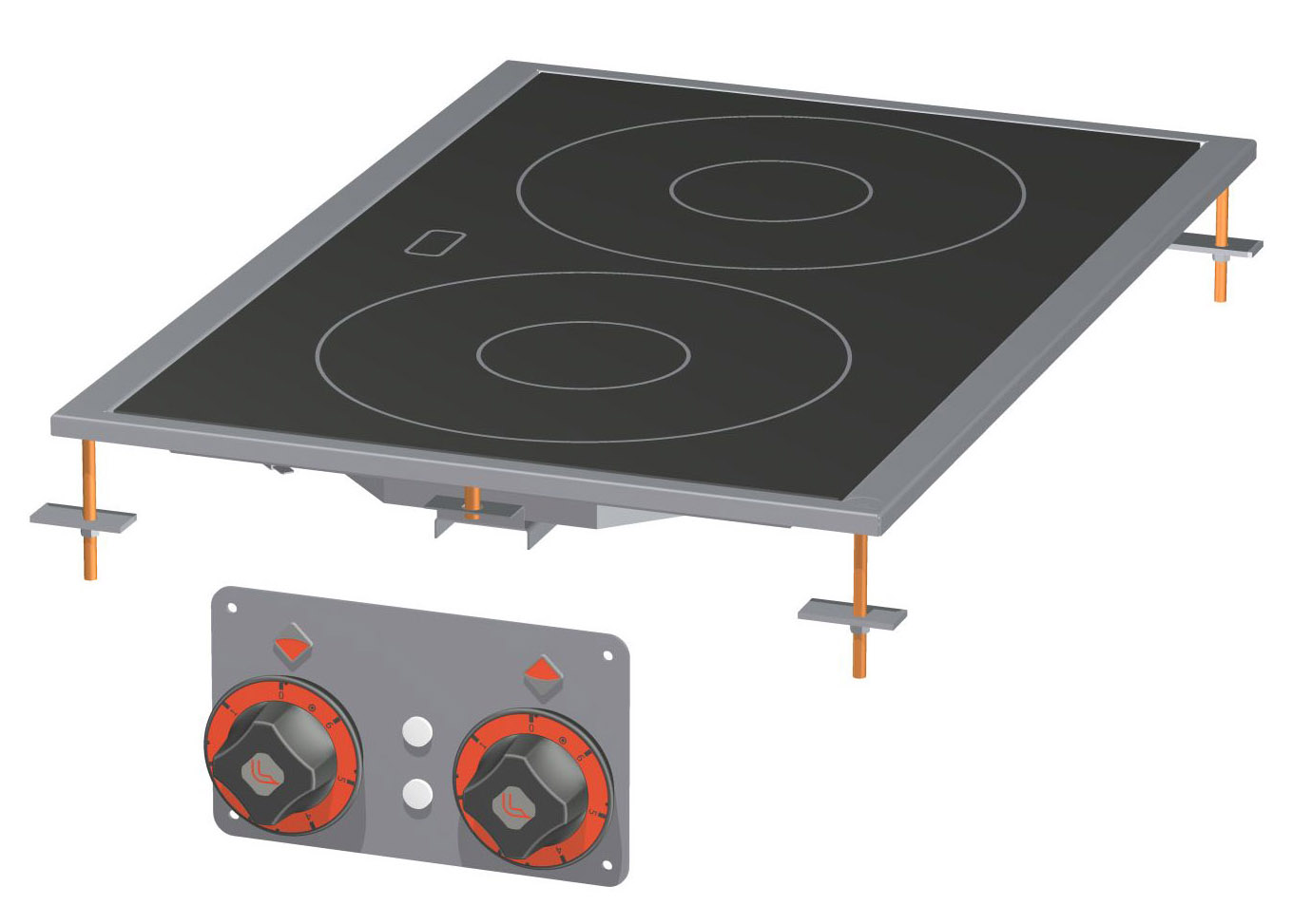 PIANO COTTURA VETROCERAMICA TRIFASE su mobile a giorno – N. 2 zone – vetro cm.35×57 (inclusa 1 testata chiusura piano mod.TPA-7)